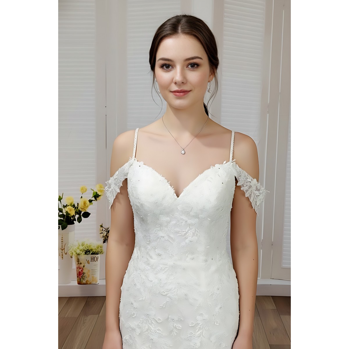 Tags: Tulle, Floral lace appliqued, Off-Shoulder Straps, Fitted and Flare