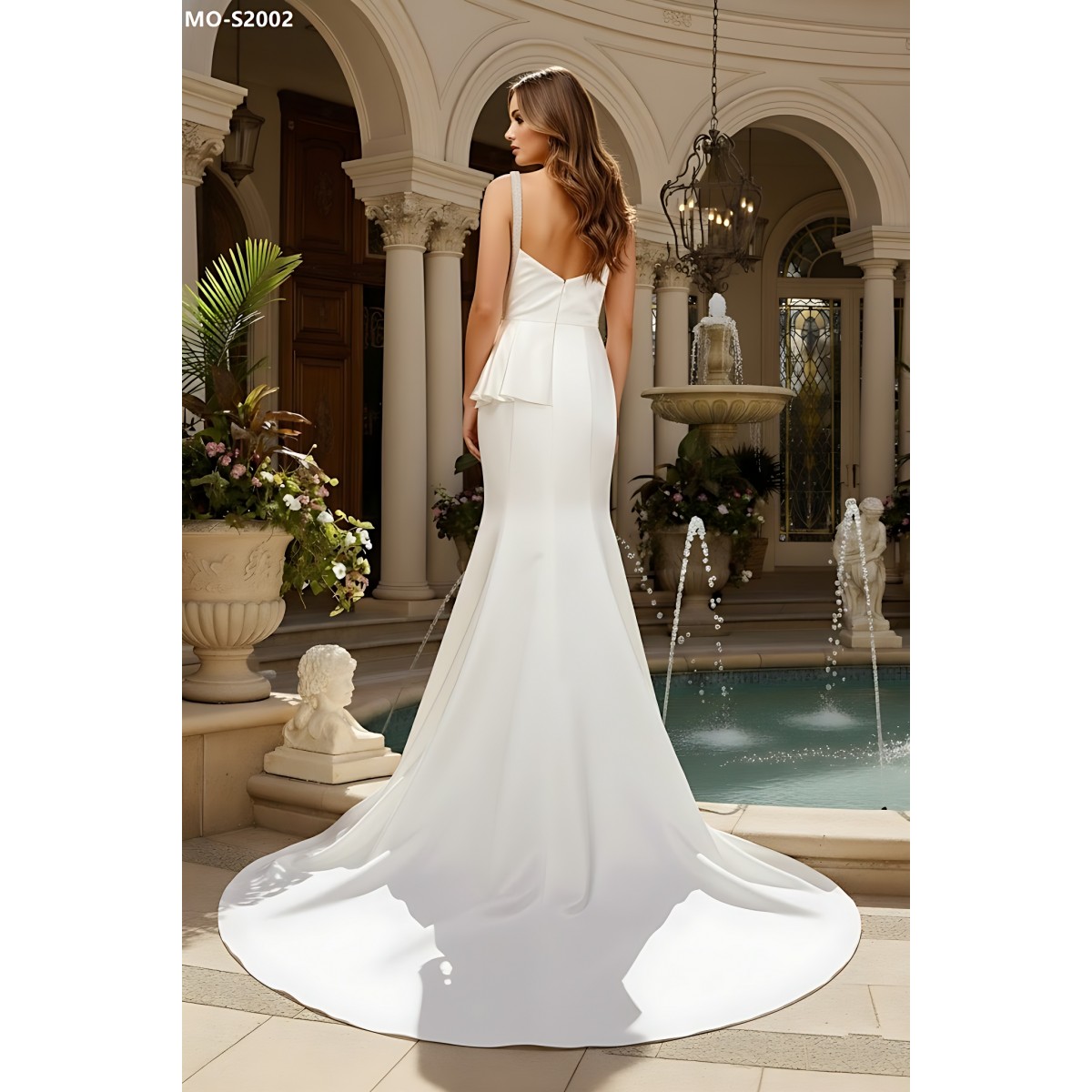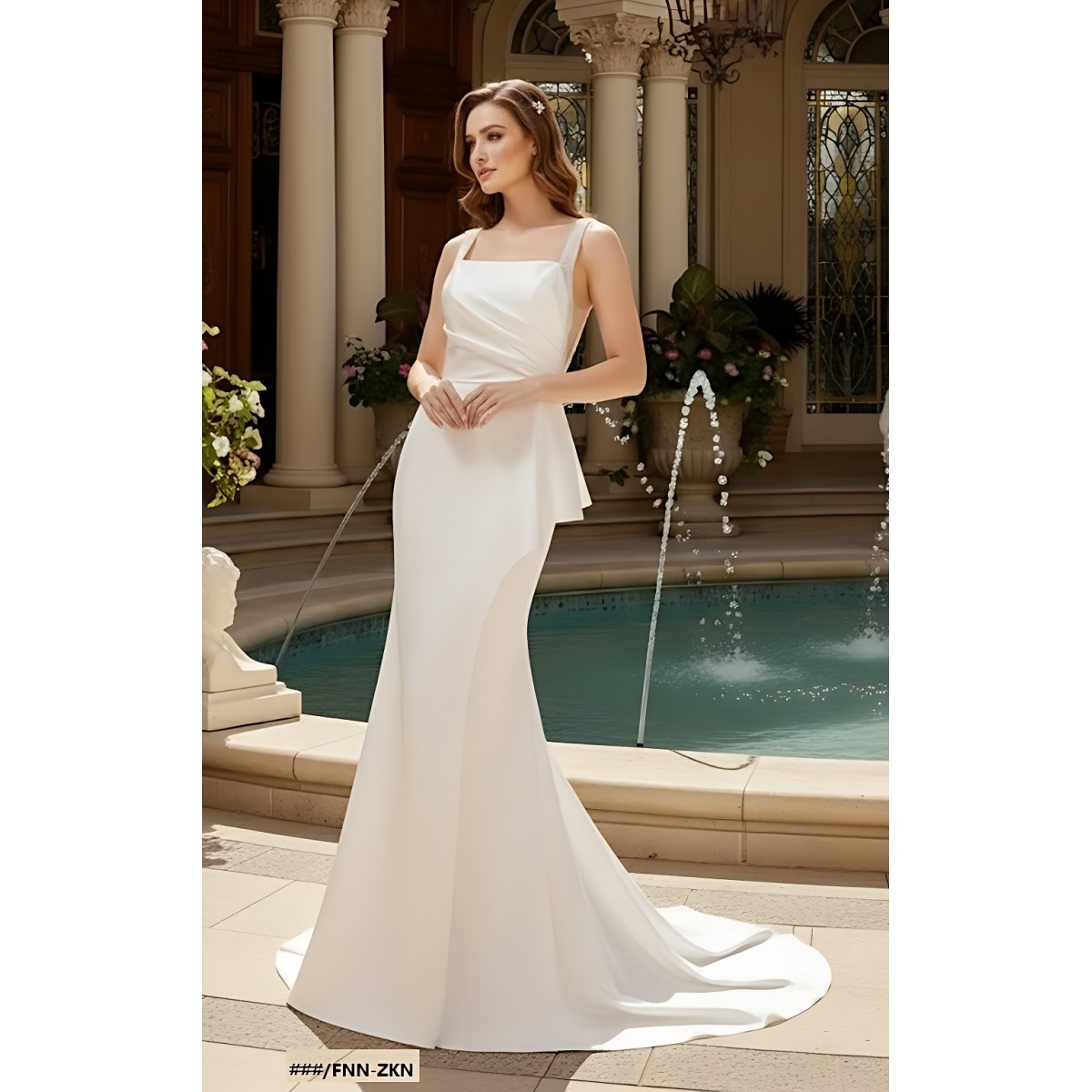 Fitted N Flare Satin Square Neckline Ruffle Slit Skirt Wedding Dress - MO-S2002