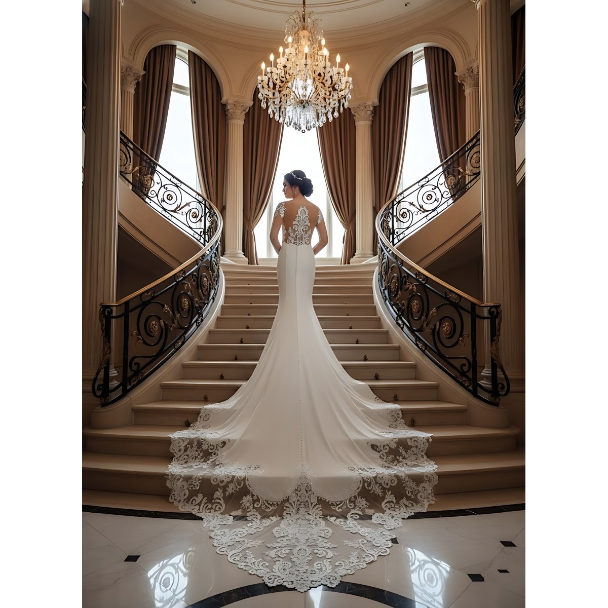 • Sheer lacy cut-out train